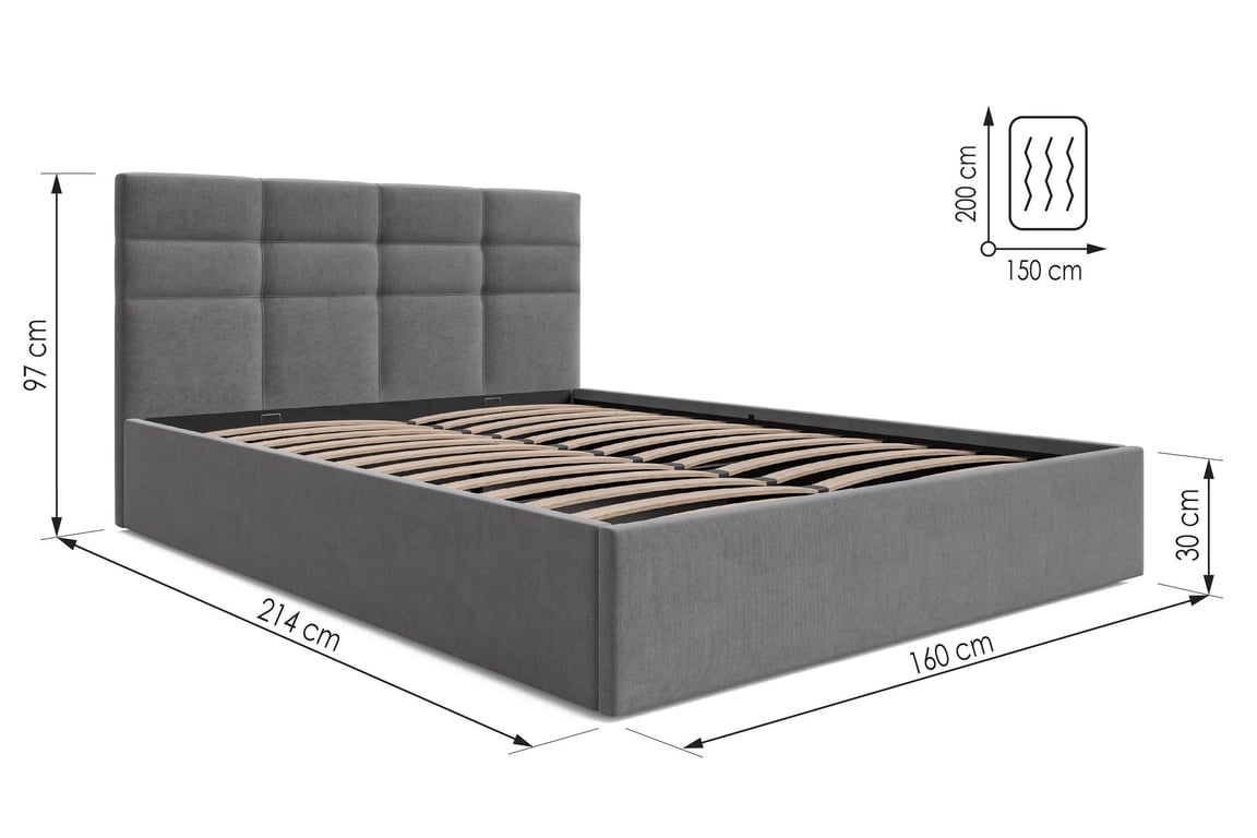 The JULIAN bed is built with durability and comfort in mind. Its sturdy wooden frame ensures long-lasting stability, while the high-quality upholstery fabric feels soft to the touch yet resists daily wear and tear. The bed features a metal lifting mechanism supported by gas struts, allowing the sleeping surface to rise smoothly and effortlessly, revealing a spacious storage compartment underneath.