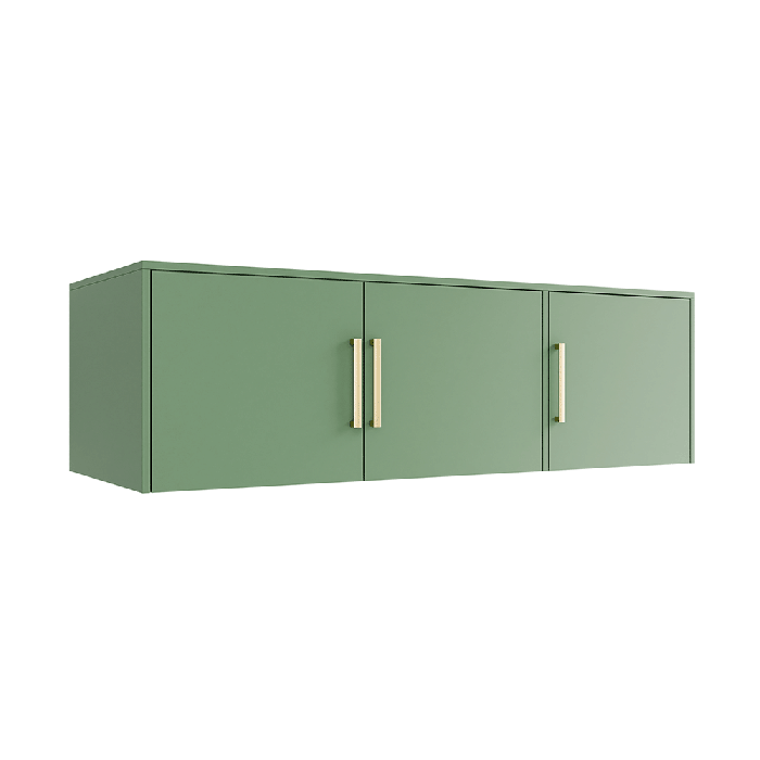 The BALI D3 green wardrobe is both elegant and practical, featuring 3 hinged doors, one of which is mirrored to enhance your room’s light and space. Made from durable 16 mm laminated chipboard, this wardrobe is built to last and is easy to maintain. The gold handles add a touch of luxury and sophistication, elevating the wardrobe's