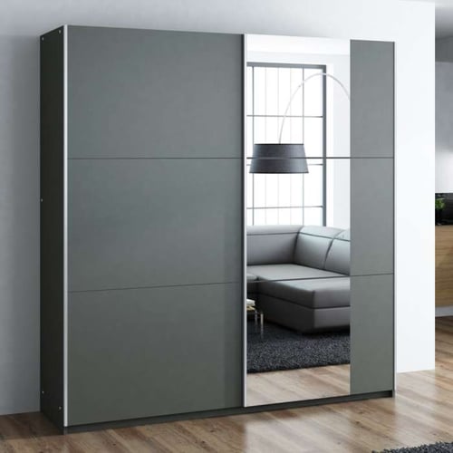 The BASTIA 150cm white mirrored sliding door wardrobe features a sleek design, and offers practical storage and a touch of elegance to any room.