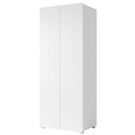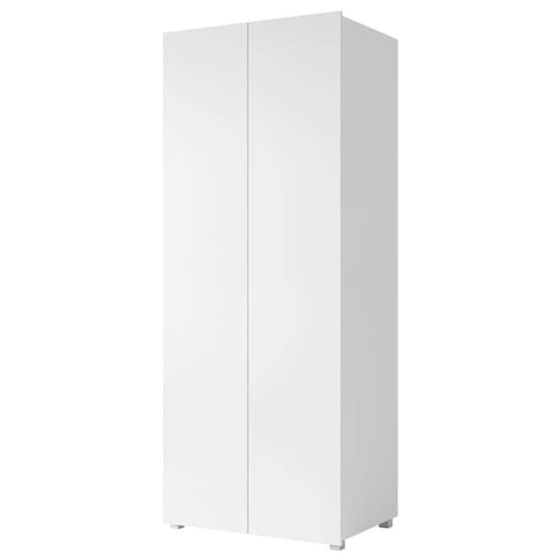 This wardrobe features a clean, modern design with a white matte body and a sleek white gloss front. The matte finish on the body offers a subtle, understated elegance, while the glossy front adds a touch of shine and sophistication. The contrast between the two finishes creates a contemporary look, making it a versatile addition to any room. Perfect for brightening up spaces.