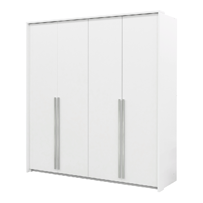 The GENUA 210 Wardrobe is a sleek and functional addition to any modern space. Crafted from durable 16mm laminated chipboard, its clean white finish exudes elegance and simplicity. Featuring four hinged doors with long, stylish handles,
