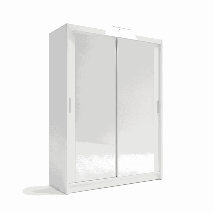 The PARIS 160cm white wardrobe features 2 full-length mirrored sliding doors on durable aluminium rails and is constructed from 16mm laminated chipboard for long-lasting quality. An optional single LED light can be purchased when ordering, which can be added to enhance the wardrobe’s top for a stylish touch.
