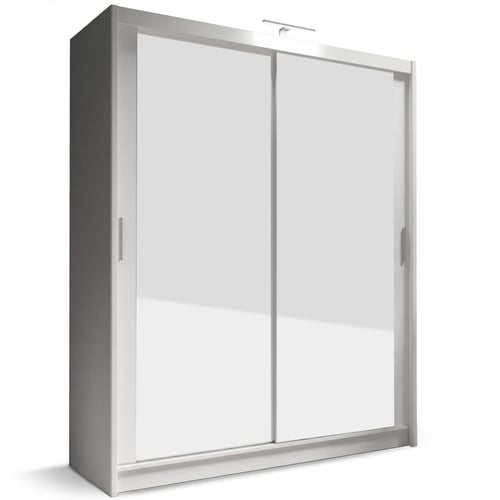 The PARIS 180cm white wardrobe features 2 full-length mirrored sliding doors on durable aluminium rails and is constructed from 16mm laminated chipboard for long-lasting quality. An optional single LED light can be purchased when ordering, which can be added to enhance the wardrobe’s top for a stylish touch.