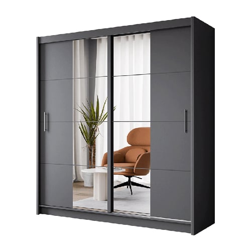 PORTO 2 203cm Sliding Door Wardrobe Graphite + Mirror9.2 out of 10 stars