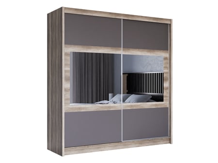 This wardrobe features two sliding doors, each adorned with a horizontal mirrored panel with an oak canyon frame, that adds a touch of elegance while creating a sense of spaciousness in your room.