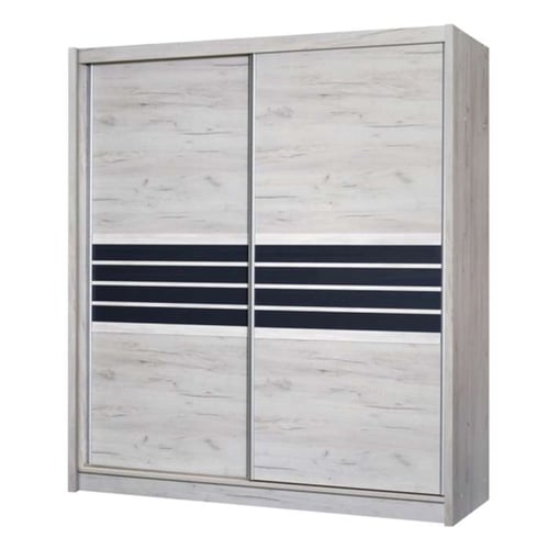The TURYN Wardrobe (203cm) in lava (brown/grey) with black glass is a modern and practical storage solution. It features 2 sliding doors with a sleek design, 8 spacious shelves, and 2 hanging rails to keep your clothes and accessories neatly organised. The combination of the warm lava tones and stylish black glass panels adds a touch of sophistication to any bedroom. Crafted from high-quality 16mm laminated chipboard, this wardrobe offers durability and a contemporary look for your home.